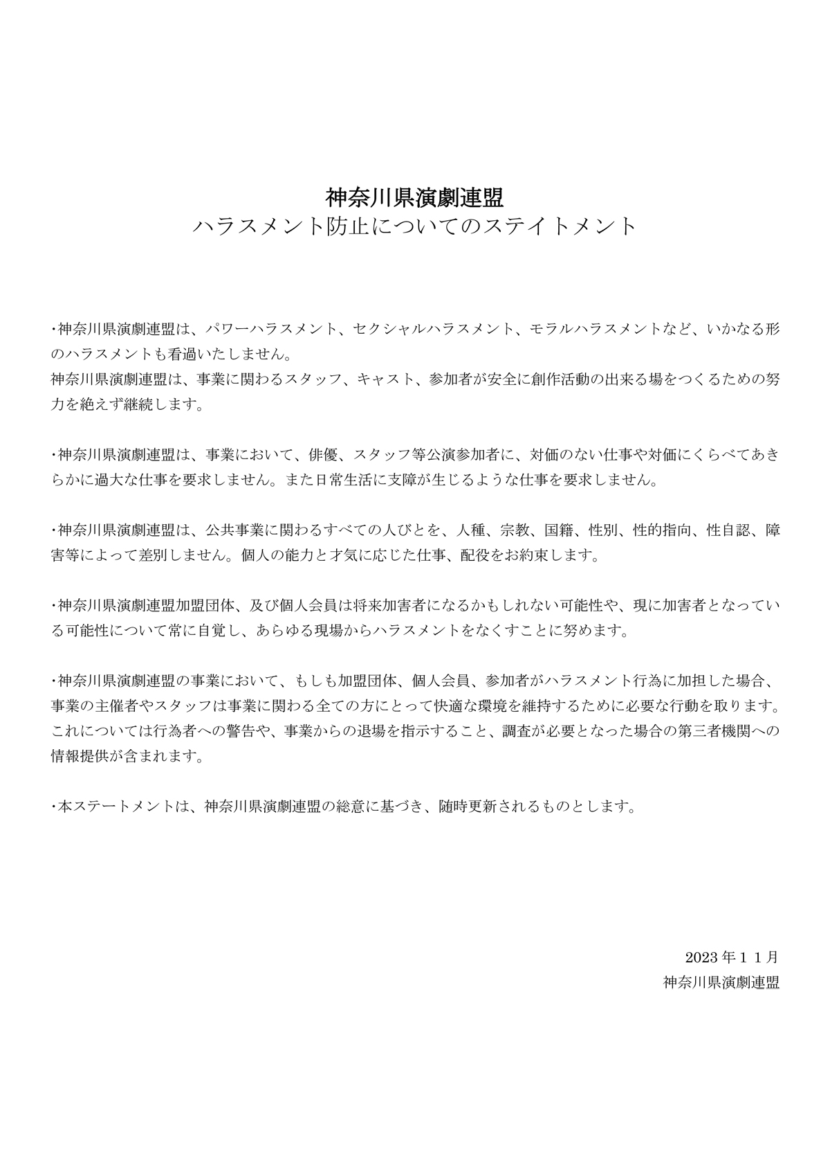 ※当内容は、神奈川県演劇連盟の総意に基づき、随時更新されるものとします。