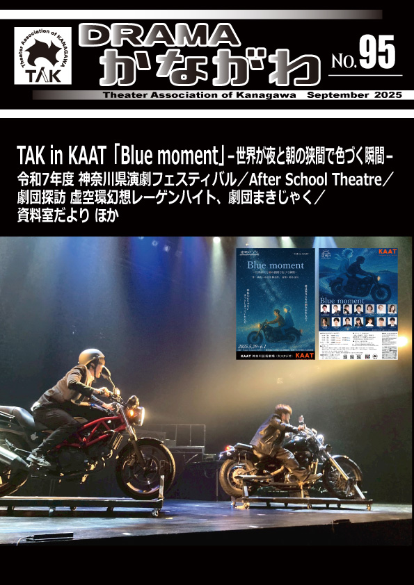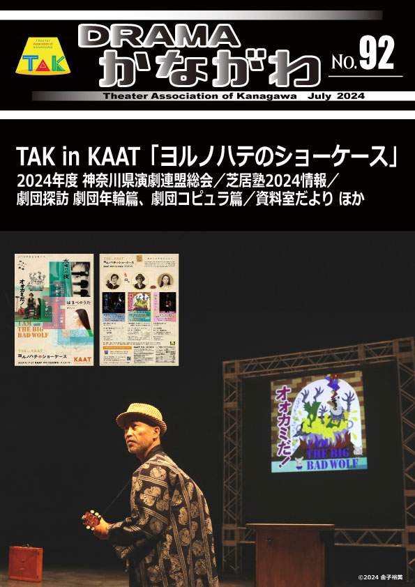 | ▶86号 | 2022.05.31 | 2021年度TAK合同公演「サプライズ!!!」「YOKOHAMAというステージを追いかけてきた!!」「西遊記 2022」、第19回かながわ演劇博覧会、TAK in KAAT「KANAGAWA MUSIC REVUE SHOW vol.3」、資料室だより |