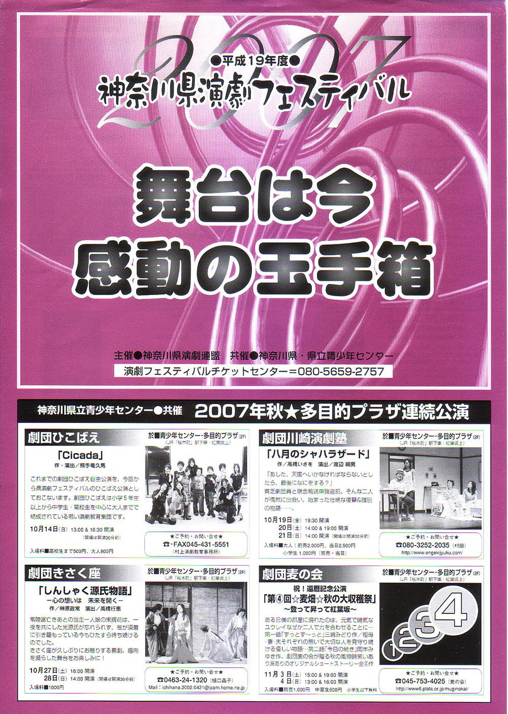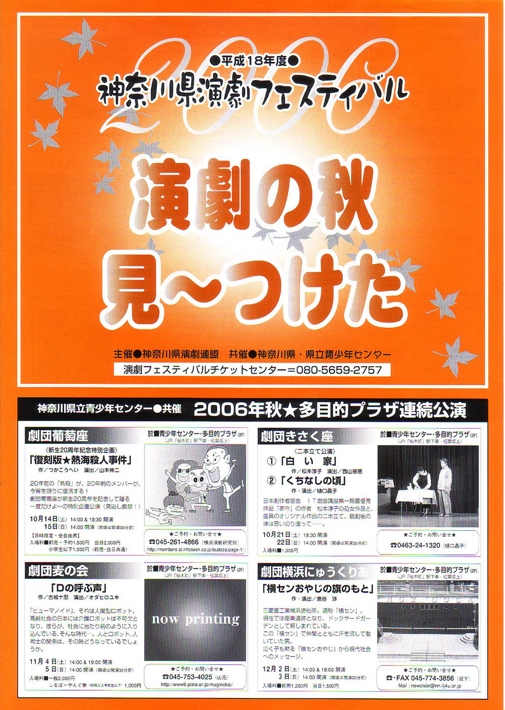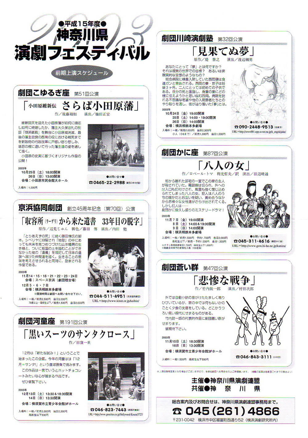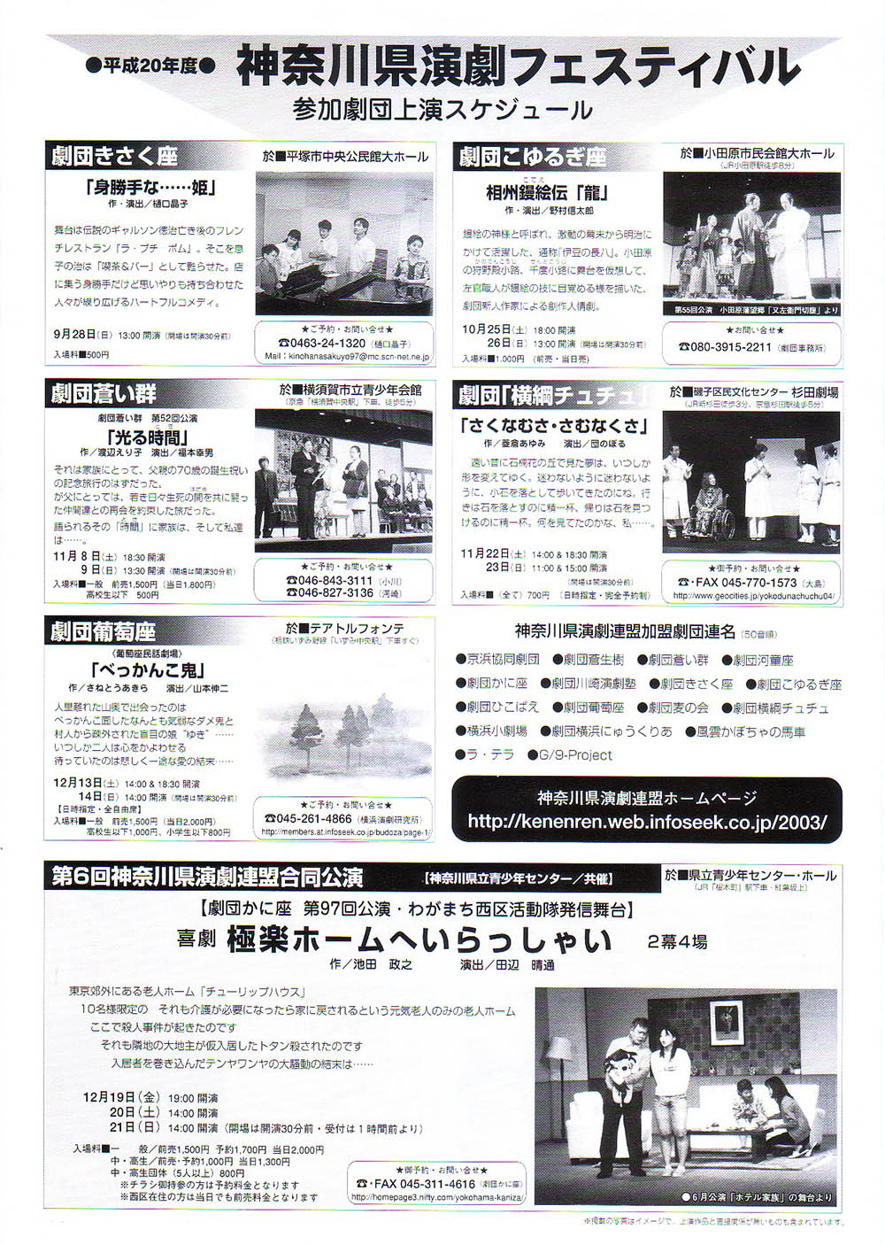 【問い合わせ】[TEL]046-823-7443(劇団事務所)