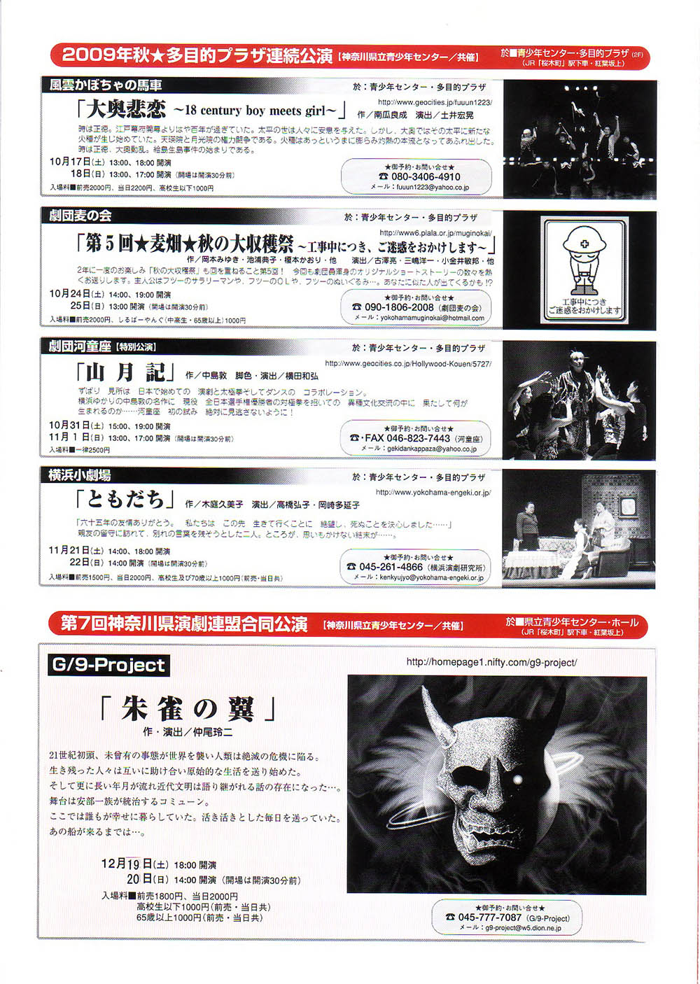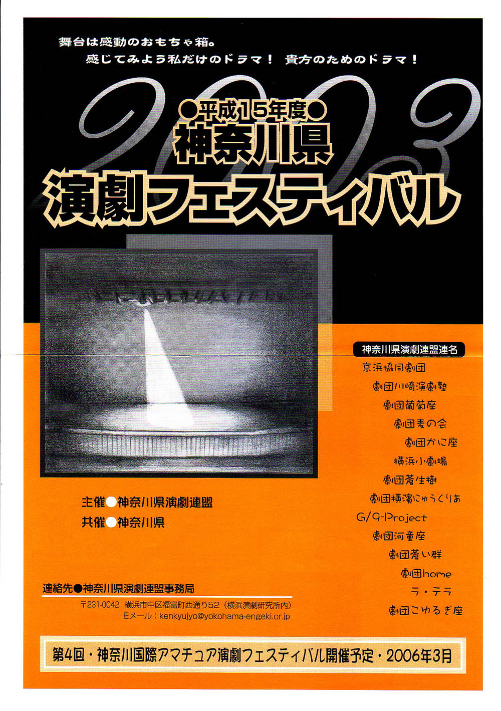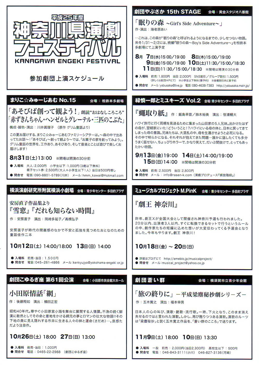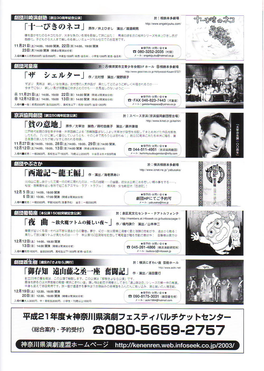 【問い合わせ】[TEL]046-823-7443(劇団事務所)