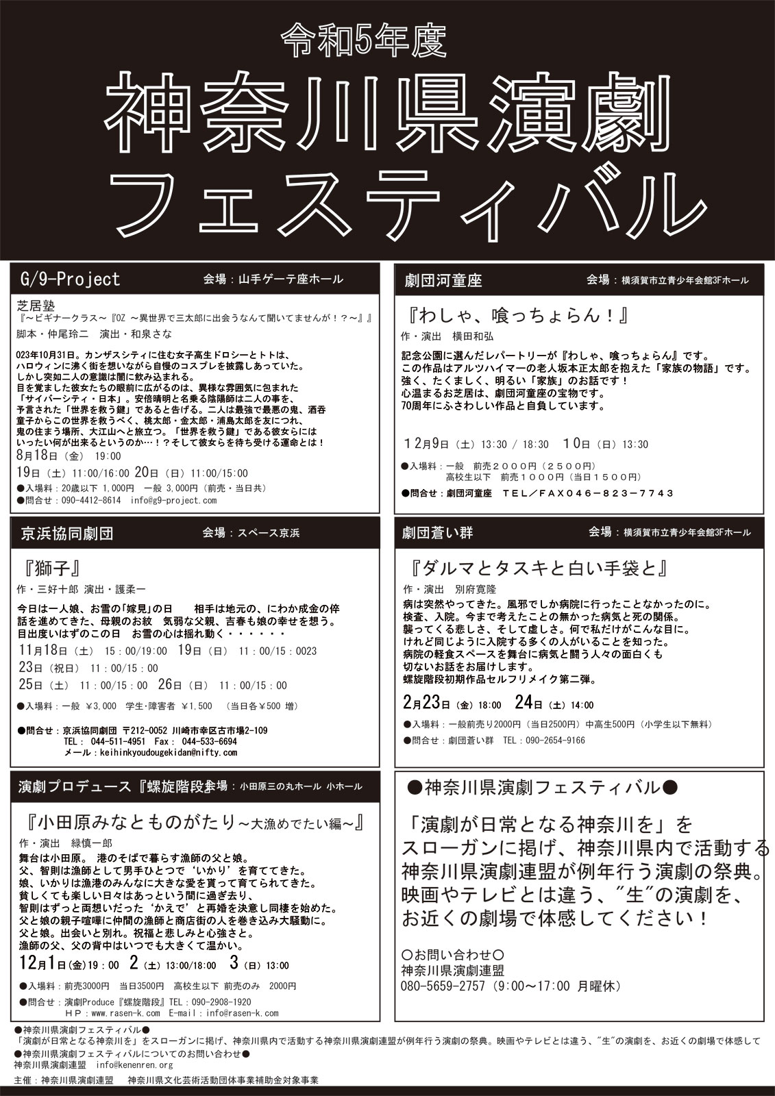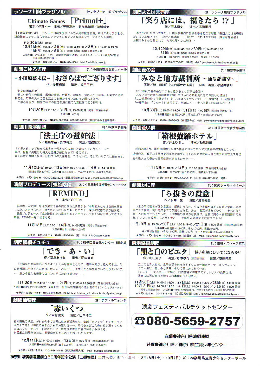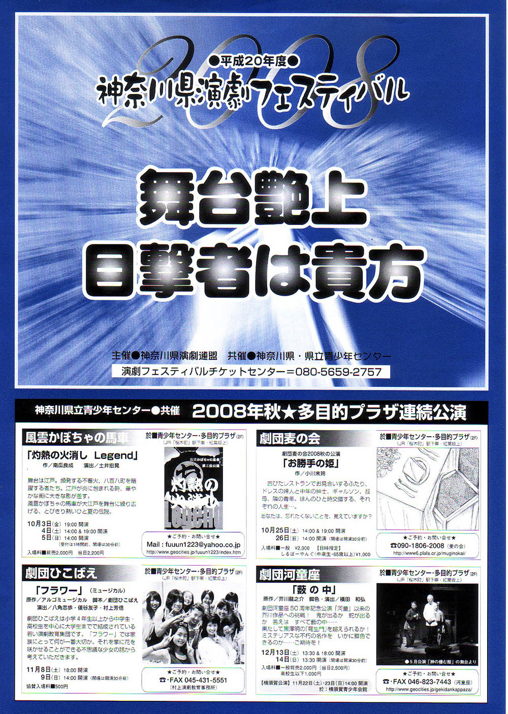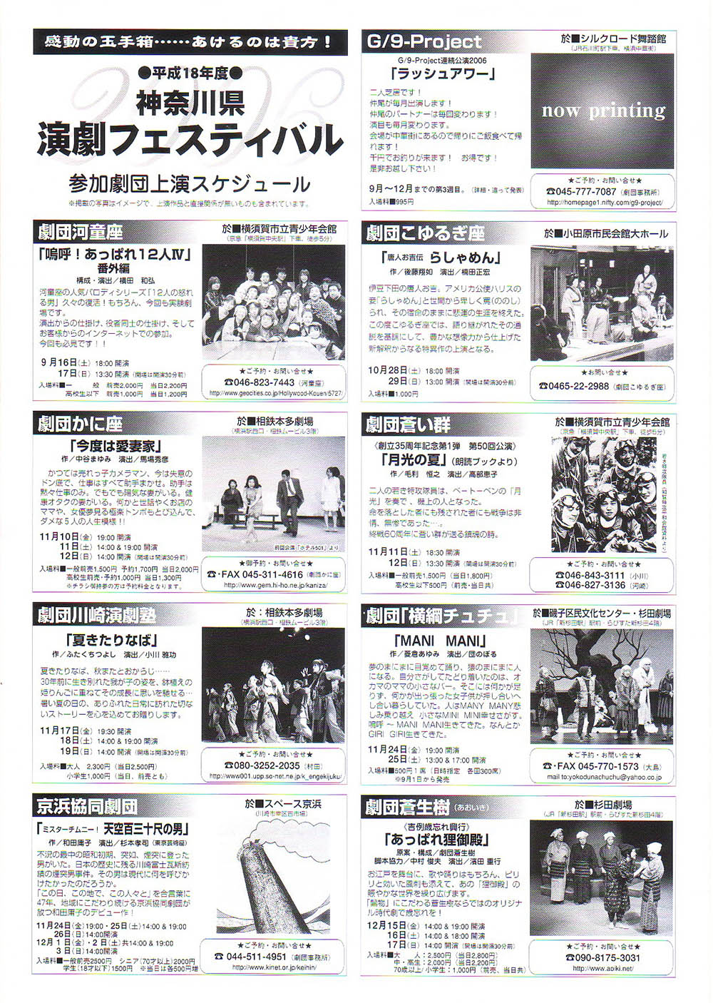 【問い合わせ】[TEL]046-823-7443(劇団事務所)