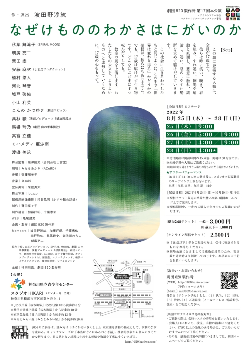 【日時】2022/8/25(木)19:00、26(金)15:00/19:00、27(土)14:00/19:00、28(日)14:00