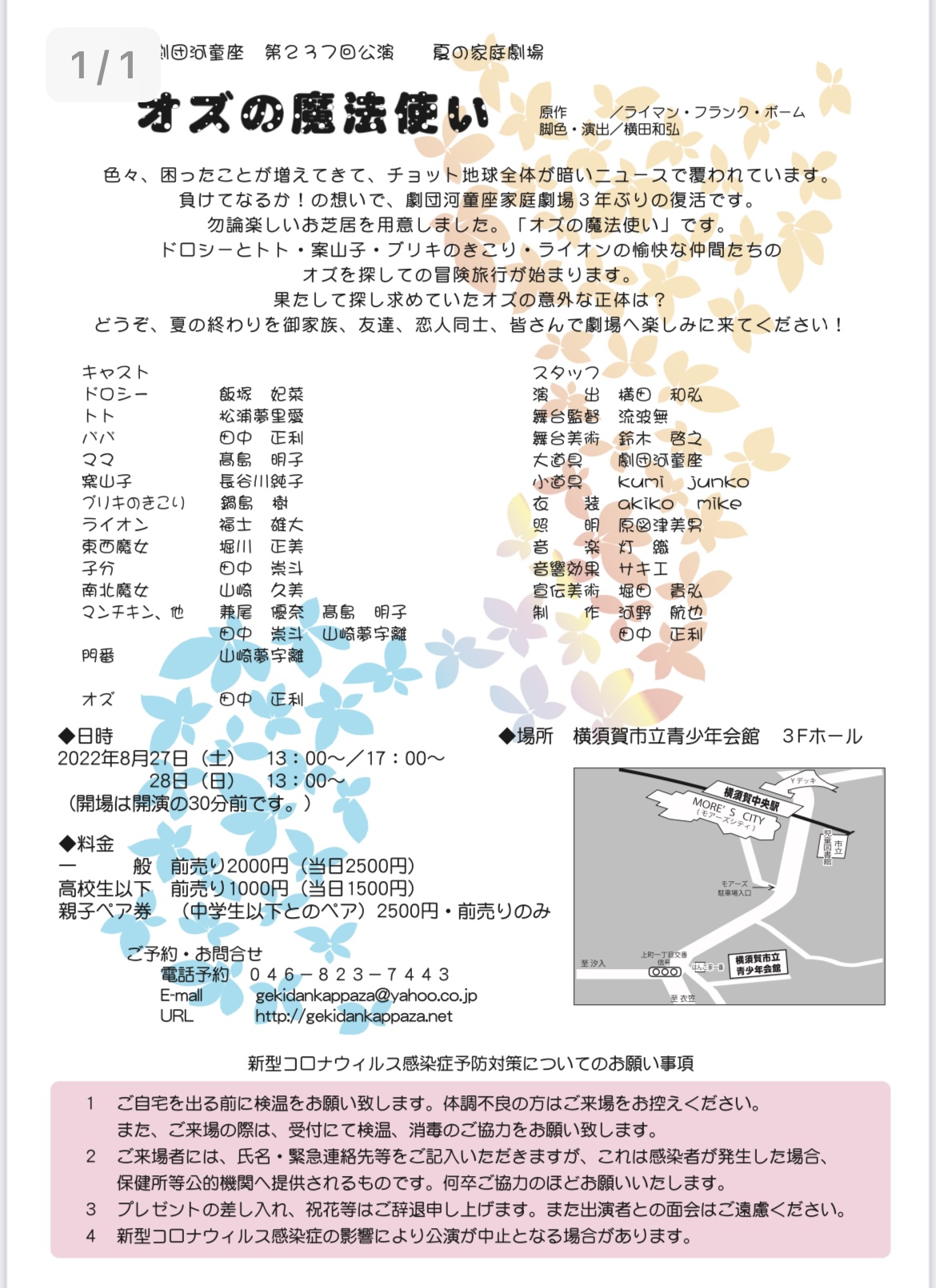 【料金】小学生以上1,500円、※未就学児の膝上観賞は無料