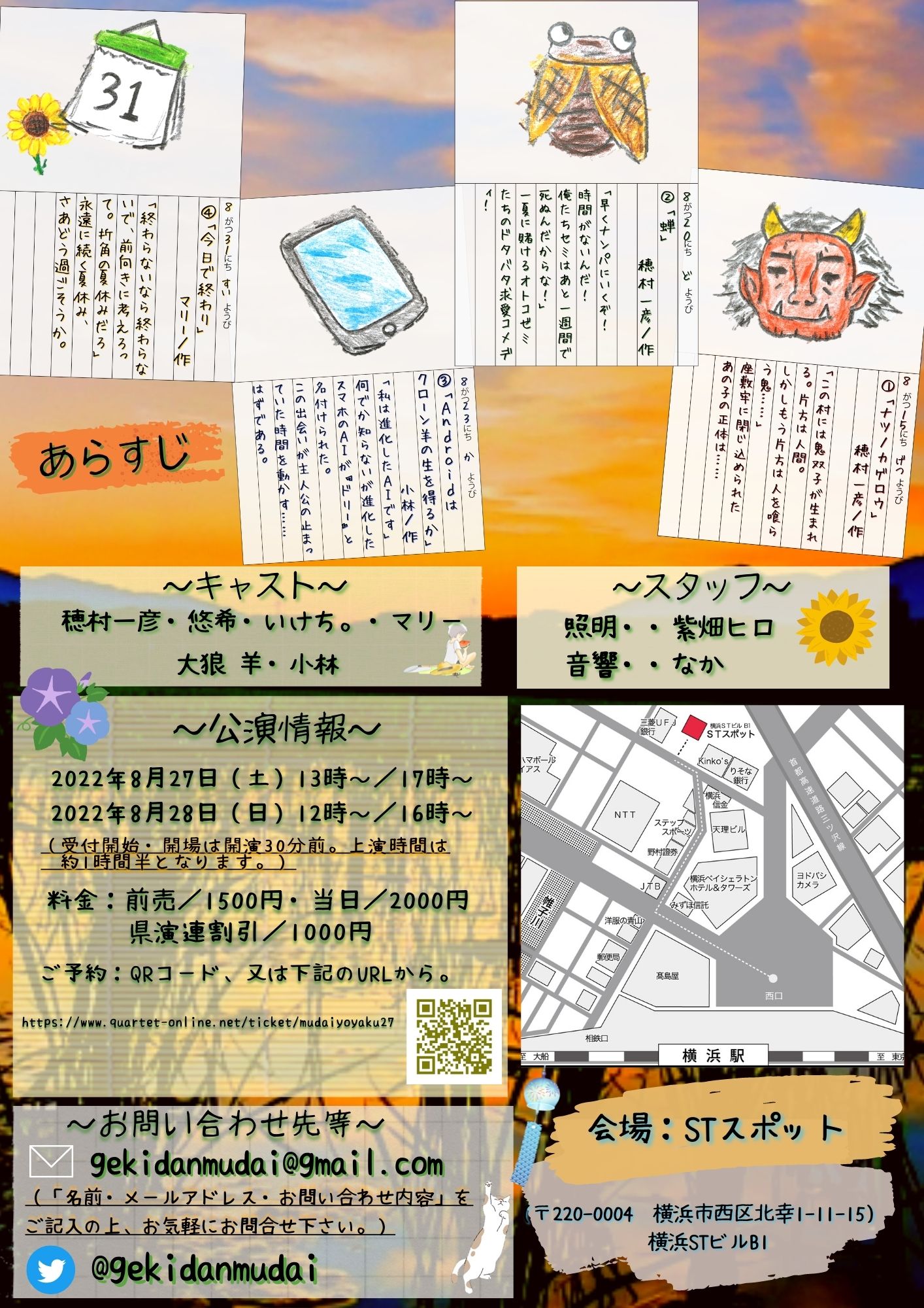 【日時】2022/8/27(土)13:00/17:00、28(日)12:00/16:00